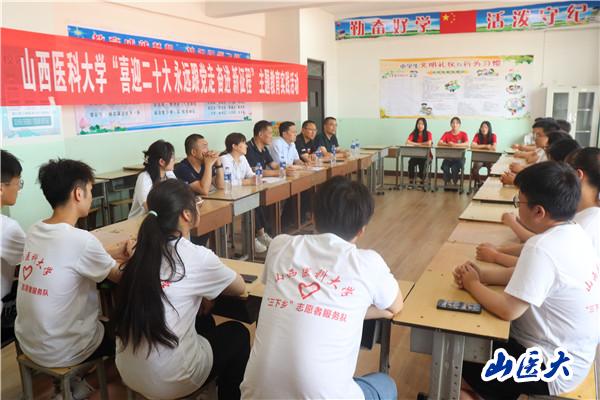 为深入学习习近平总书记在中国共青团成立100周年大会上的重要讲话精神,引导青年学生上好“大思政课”,7月8日,校党委副书记王宏伟带队,赴平遥县香乐乡慰问精神卫生学系“三下乡”社会实践服务队队员。学生工作部部长赵良渊、校团委书记张利宏、计划财务处处长任胜利和校团委工作人员陪同。