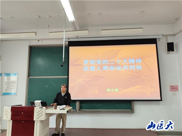 会议邀请到太原理工大学秦志敏教授做专题讲座,秦志敏教授以《贯彻党的二十大精神 促建人类命运共同体》为题,解析了人类命运共同体的相关概念和理念,从经济市场的变革、地理大发现的影响、近代自然科学的出现、现代科学技术的发展到经济全球化的浪潮,加深了人类命运共同体理念的深入理解。