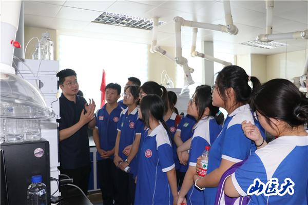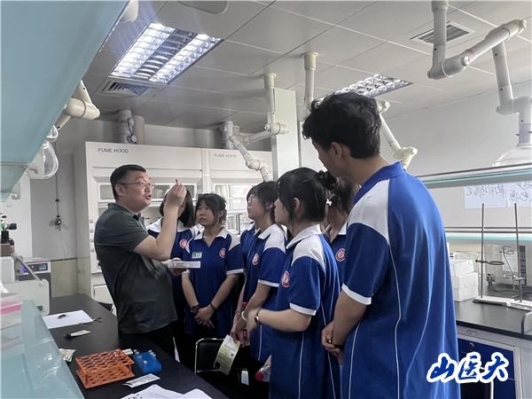 随后,榆次二中45名师生乘大巴车来到我校中都校区,参观了法医学院毒化实验室。其实验设备和条件已达到全国同类实验室先进水平。实验室中,张潮、曹洁、陈哲三位老师从何为毛发研磨、如何检测体液等鲜活案例为切入点,细致入微的向同学们讲解并展示了多种实验仪器的操作方法和用途,同学们全神贯注紧跟讲解节奏、不时发出惊叹声。