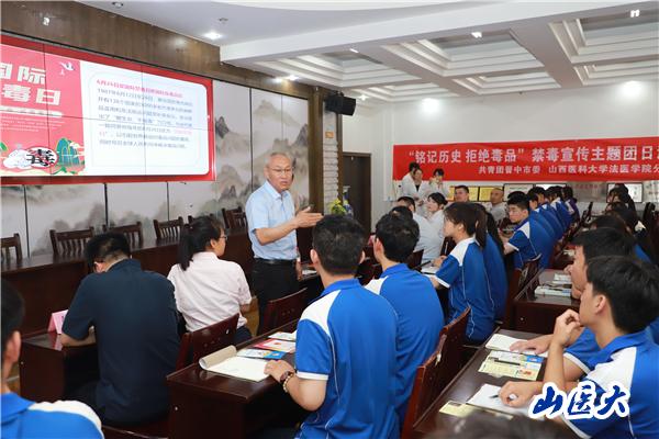 在第36个国际禁毒日来临之际,共青团晋中市委、榆次区团委和我校法医学院分团委联合开展了“铭记历史 拒绝毒品”禁毒宣传主题团日活动。