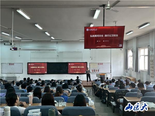 张志红以弘扬黄河文化为切入口,指出了保护黄河,就是追逐中国梦,从政治、经济、文化教育、科学技术和思想学术等方面阐述了黄河文化在我国的重要地位,指出黄河文化是中华民族精神支柱的重要部分,阐述了保护黄河流域文化的国家、山西省的有关工作,让同学们更深一步理解公卫人在黄河文化保护中的担当。她以贴近生活、易于理解、风趣幽默的风格,赢得全体同学们的强烈认同。
