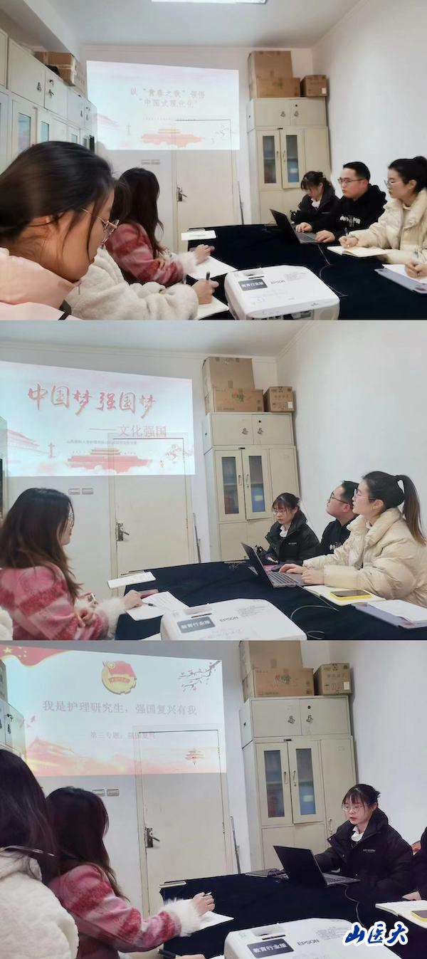 交流会上,研究生团总支王鸿伟、都旖菲、连笑寒结合“强国复兴”和“挺膺担当”的要求,分别从中国式现代化特征和内涵的理论学习、文化强国和护理研究生创新实践三个角度进行分享,同时设计了辩论赛、主题绘画、问卷答题等多种活动形式,辅以学习结果评价反馈方式,不断深化马克思主义理论学习,充分发挥专业优势。