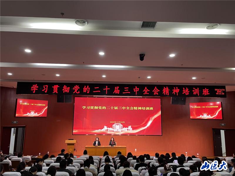 为深入学习贯彻党的二十届三中全会精神,12月24日,药学院在中都校区图书馆报告厅举办学习贯彻党的二十届三中全会精神培训班。药学院党委书记李薇出席开班式并作开班动员讲话,会议由药学院党委副书记童玲主持。